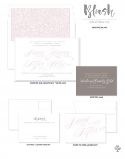 Elegance and romance come together beautifully in this invitation set! Between the font selections and ink colors—warm grey thermography and mauve thermography — this set offers a stylish touch to any wedding. The optional Pink Floral envelope lining is a memorable addition to the invitation set that will wow your guests and give your wedding stationery a modern look.