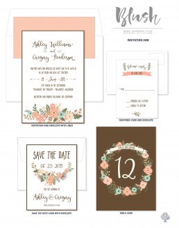 Looking for colorful floral details in your wedding stationery? Then look no further than this invitation set! The coco paper and chocolate thermography ink color gives warmth while the Basis Coral envelope lining option offers added color and ties all the floral details together.